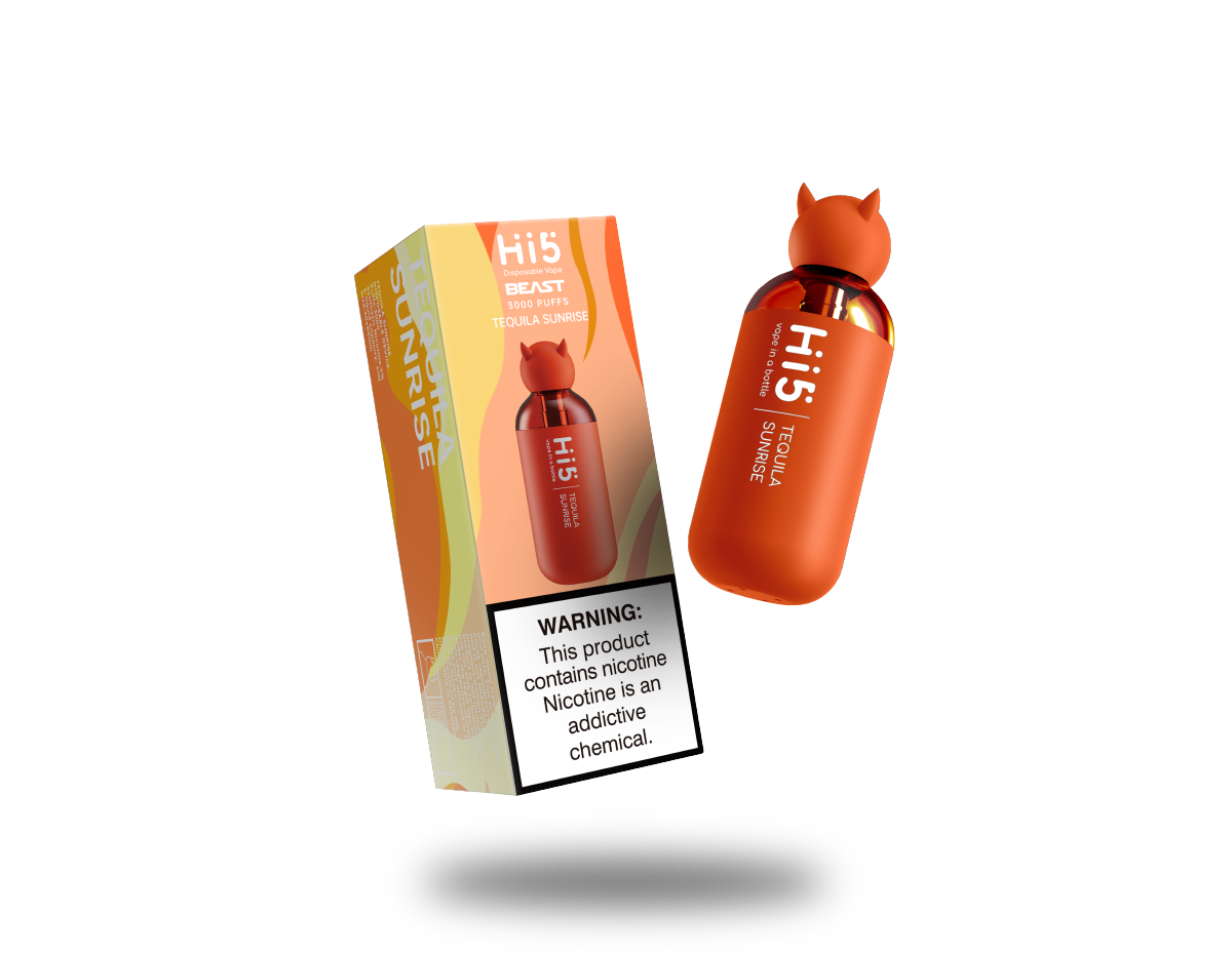 Hi5 Beast Disposable Vape Tequila Sunrise Flavor Nicotine:2%-5%. Synthetic Liquid Capacity:7ml Battery Capacity: 850 mAh Oil Coil Seperation Resistance:1.2 Ω Coil: Mesh Coil Puffs: 3000