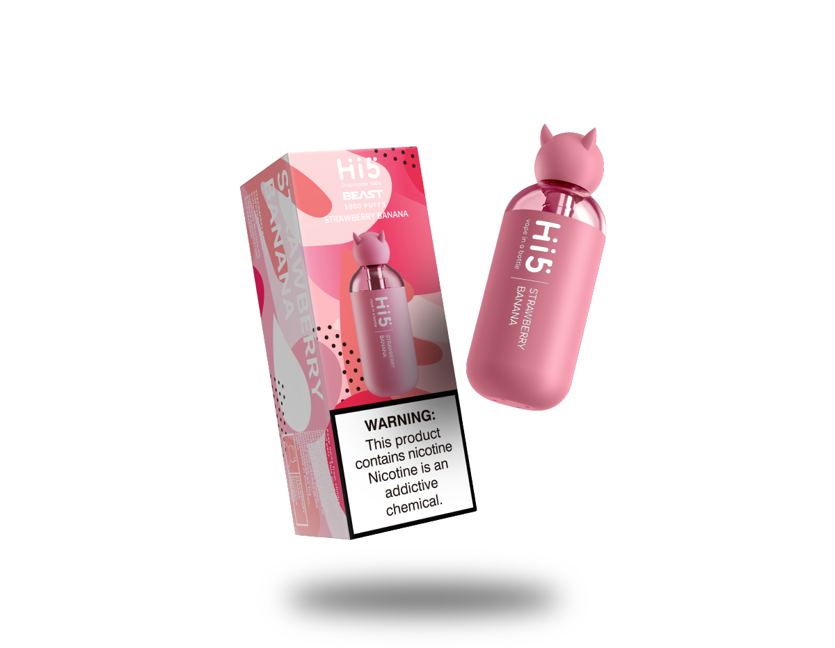 Hi5 Beast Disposable Vape Strawberry Banana Flavor Nicotine:2%-5%. Synthetic Liquid Capacity:7ml Battery Capacity: 850 mAh Oil Coil Seperation Resistance:1.2 Ω Coil: Mesh Coil Puffs: 3000