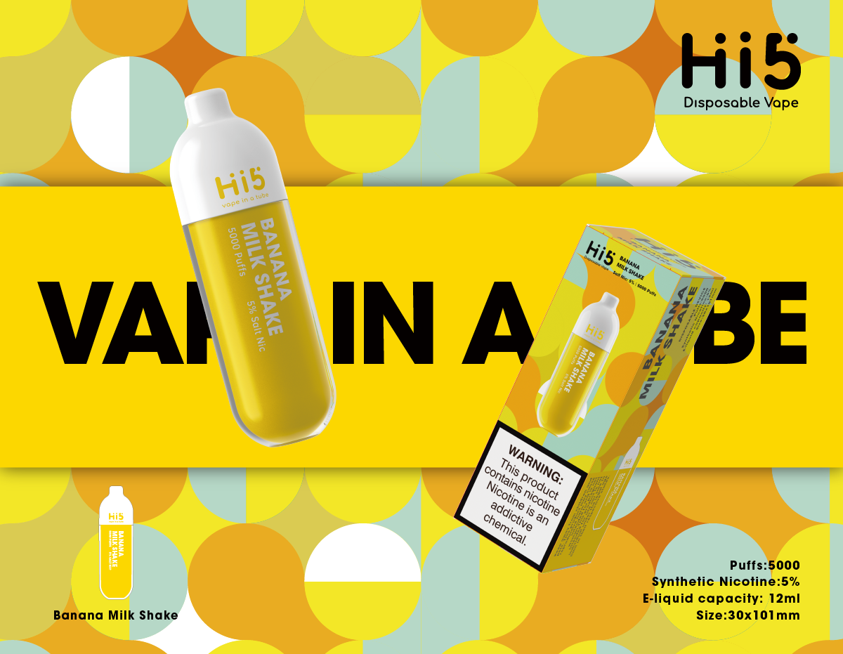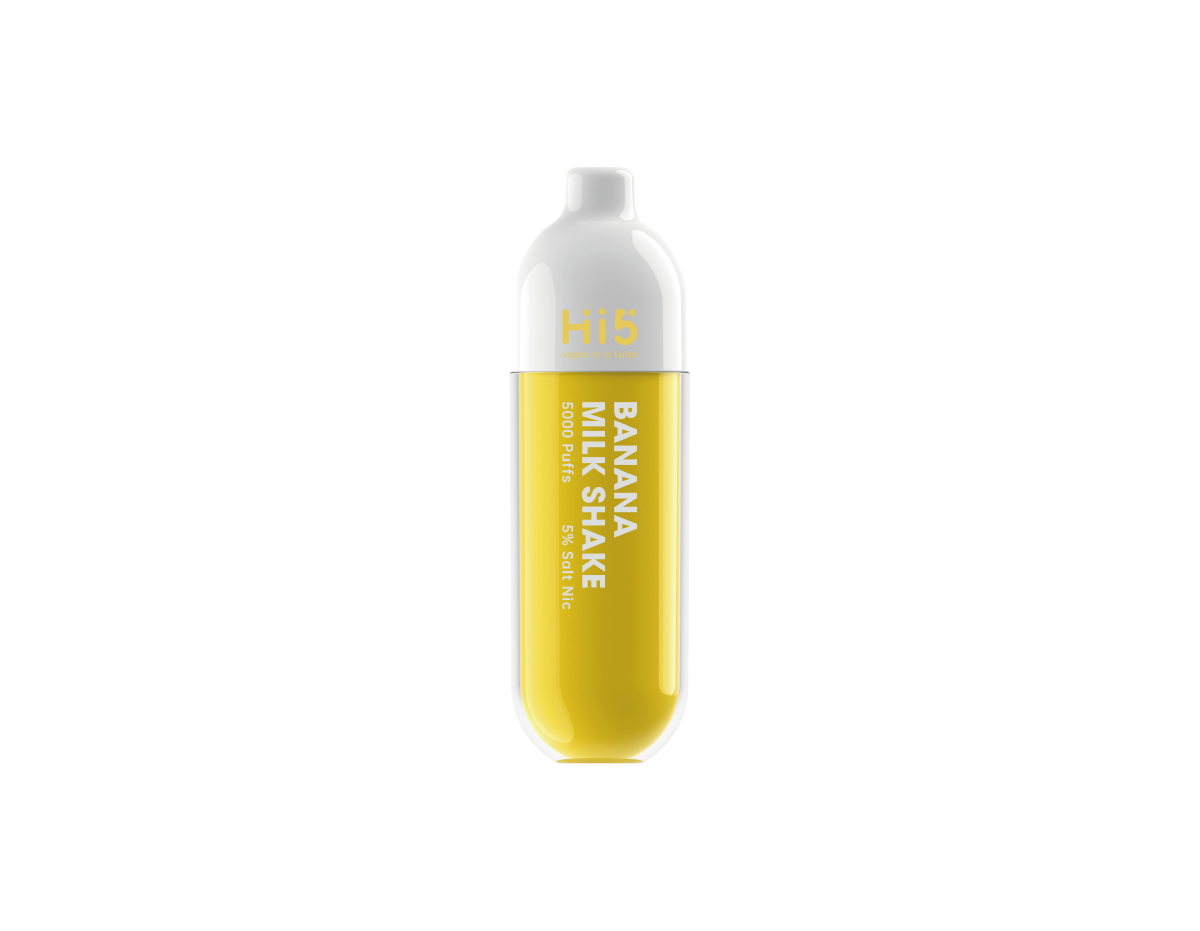 Hi5 Tube Disposable Vape Banana Mike Shake Flavor Nicotine:2%-5%. Synthetic Liquid Capacity: 12ml Battery Capacity: 650 mAh Resistance:1.0 Ω Coil: Mesh Coil Puffs: 5000