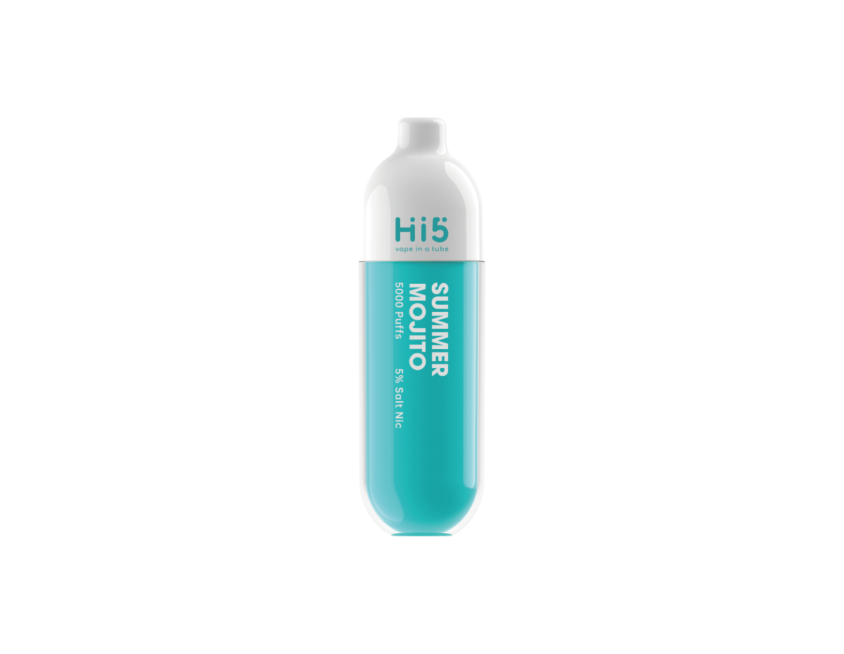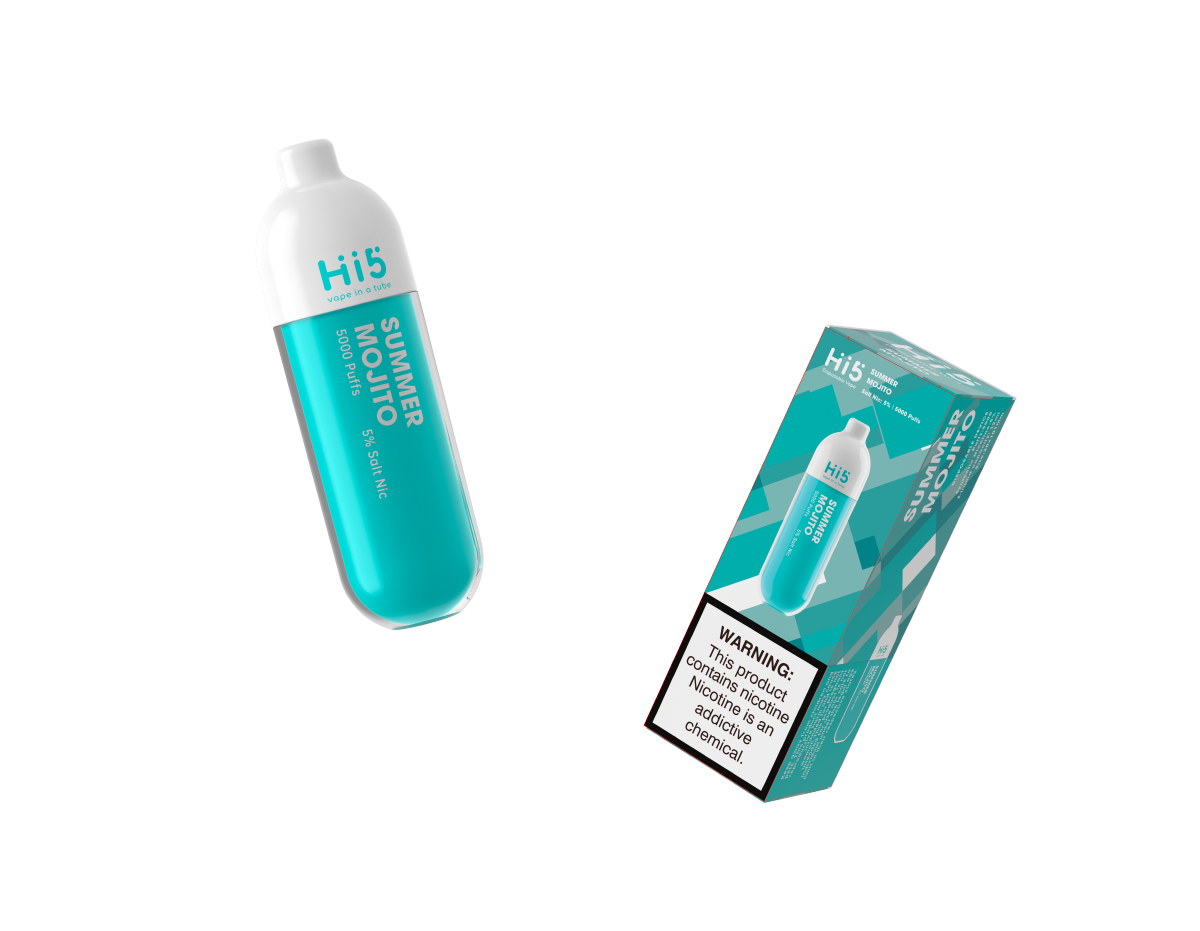 Hi5 Tube Disposable Vape Summer Mojito Flavor Nicotine:2%-5%. Synthetic Liquid Capacity: 12ml Battery Capacity: 650 mAh Resistance:1.0 Ω Coil: Mesh Coil Puffs: 5000